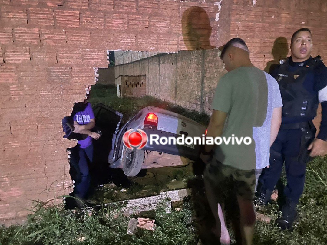 O motorista de um carro modelo Gol ficou desacordado após destruir o muro de uma residênciave cair em um buraco.