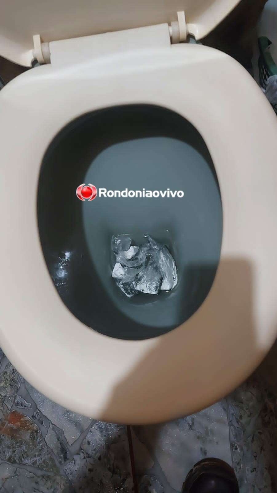 Se valendo do sistema de monitoramento, os acusados ainda conseguiram jogar parte da droga dentro do vaso sanitário, mas os policiais ainda conseguiram apreender várias porções de maconha e balança de precisão.