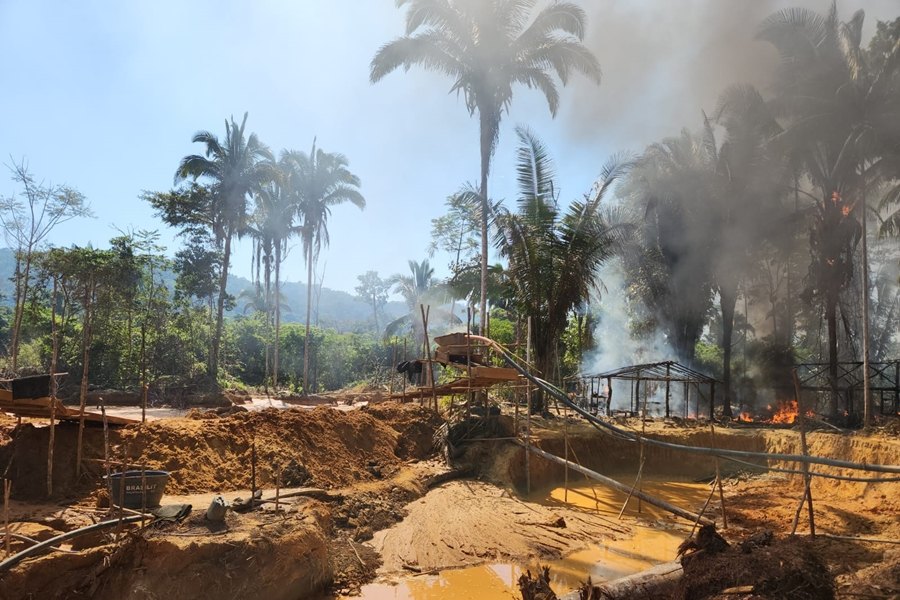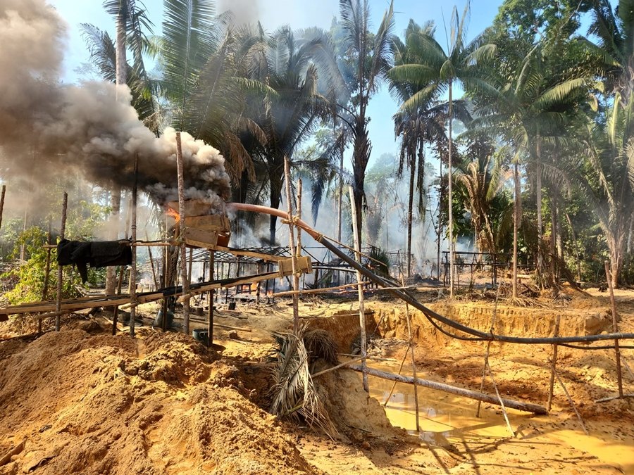 Durante a incursão foram inutilizados 10 acampamentos de garimpeiros, nove motores de dragagem, quatro geradores de energia elétrica e uma embarcação com motor de dragagem