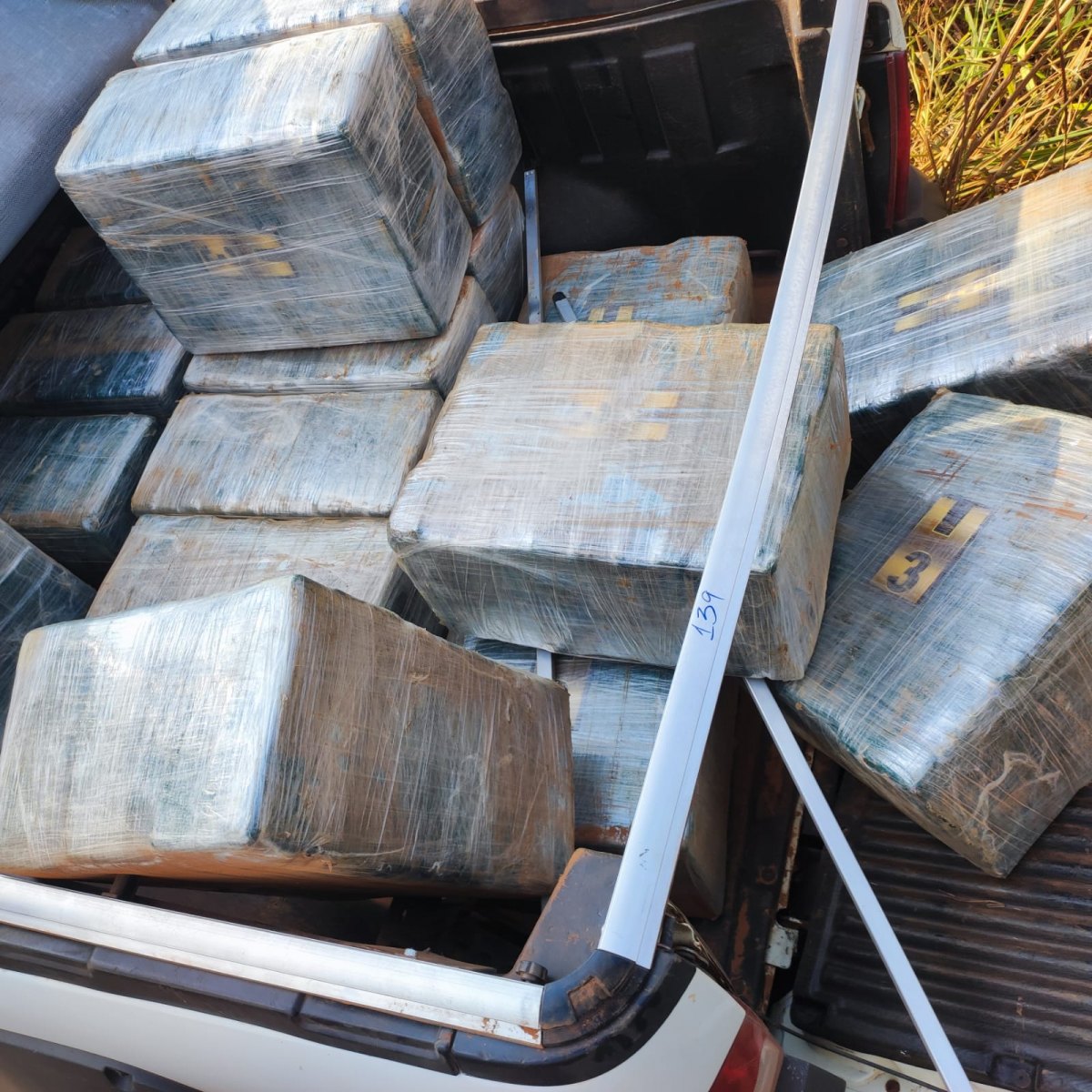 A droga estava sendo transportada em uma caminhonete modelo S10 com apoio de uma Fiat Strada. Duas pessoas foram presas durante a ação dos policiais.
