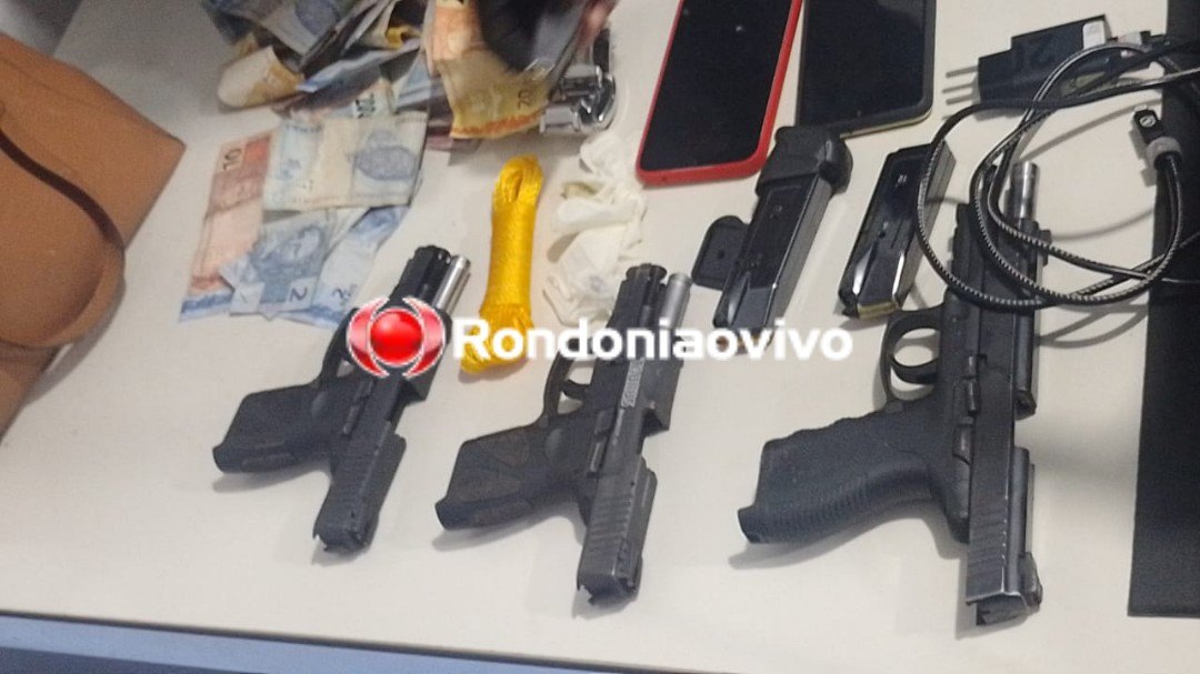 Uma pistola calibre .40, duas  9mm e um rolo de corda que os ladrões iam usar para amarrar as vítimas foram apreendidas. Outros dois bandidos fugiram.