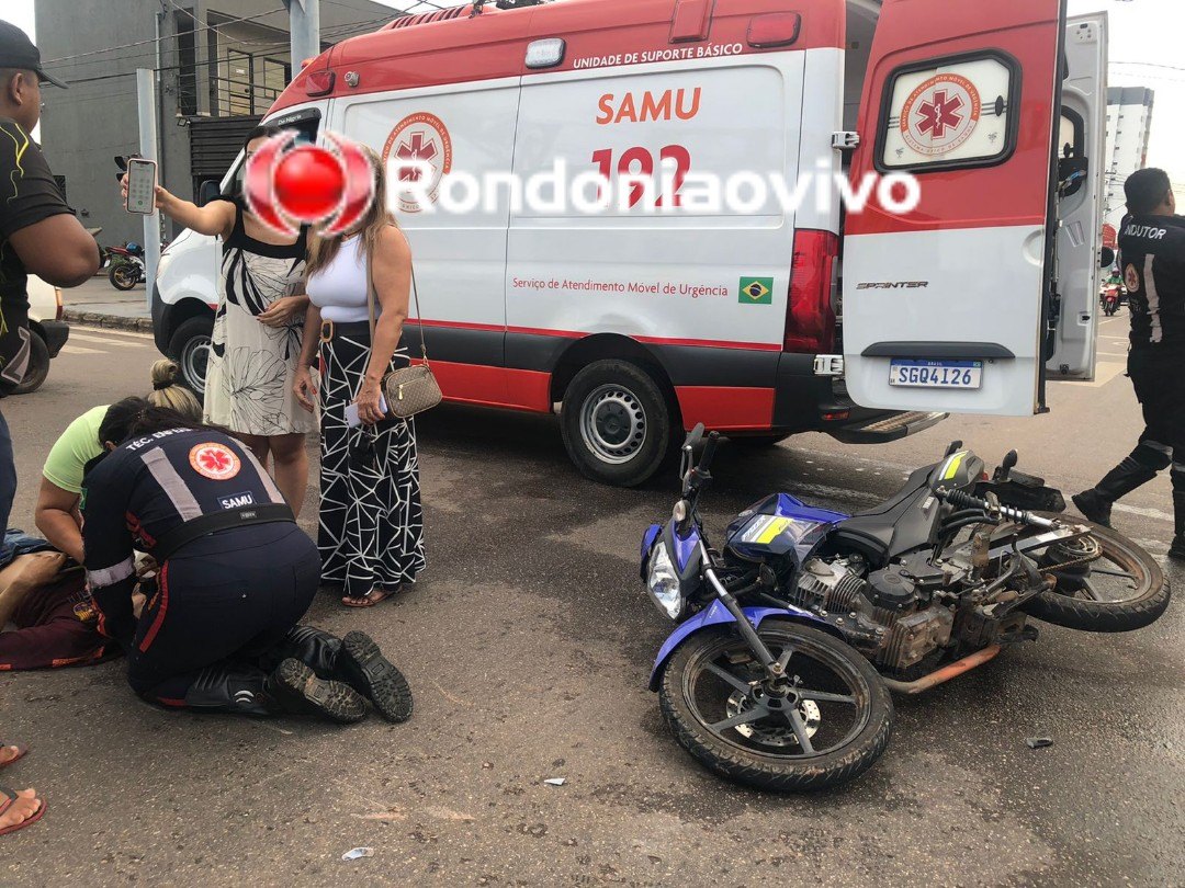 A batida foi violenta envolvendo uma motocicleta modelo Falcon e um carro. A motorista do carro seguia na Rua João Goulart e ol avançar a 7 de Setembro causou o grave acidente.