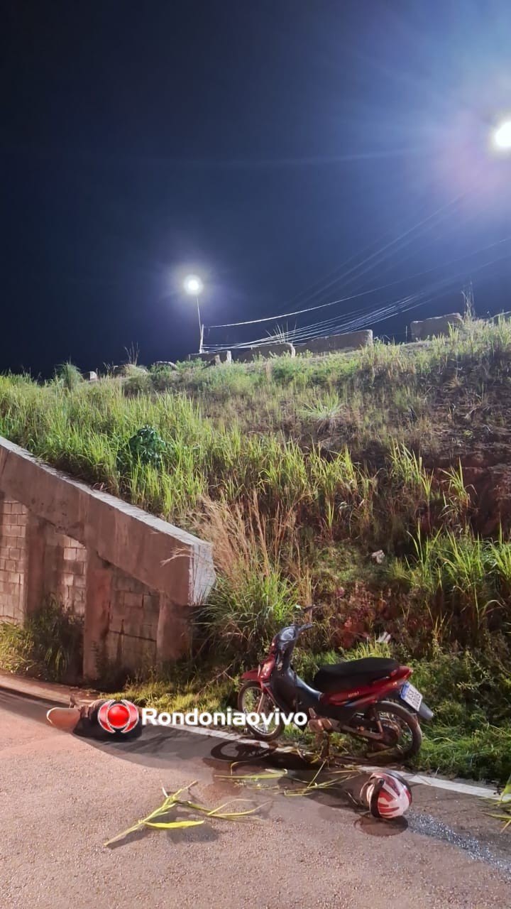 Uma motociclista foi socorrida em estado grave após cair do viaduto da BR-364 com Rua Prudente de Moraes, em Porto Velho (RO) na madrugada deste domingo (22).