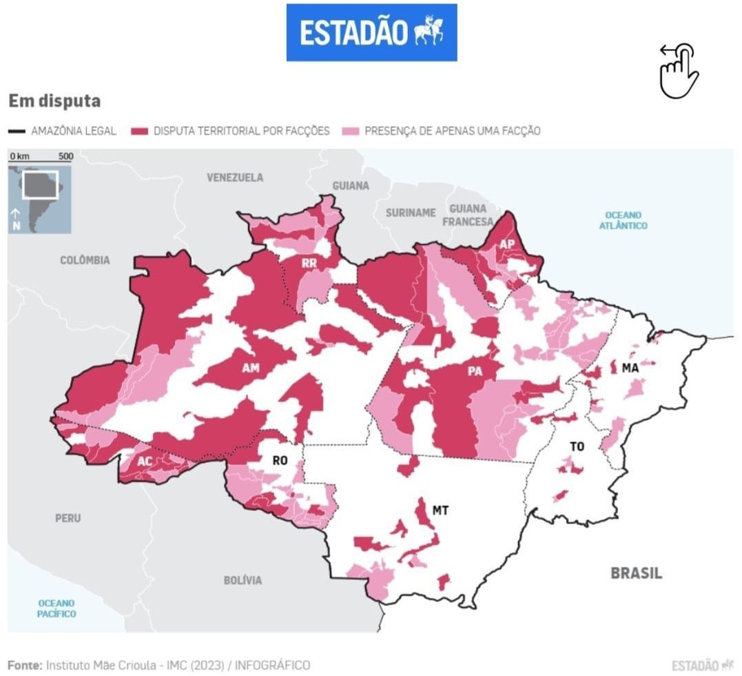 Mesmo com essa "internacionalização", apenas o Comando Vermelho, considerado dominante na região, e o PCC, reconhecido como a maior organização criminosa do país, estão presentes em todos os estados.