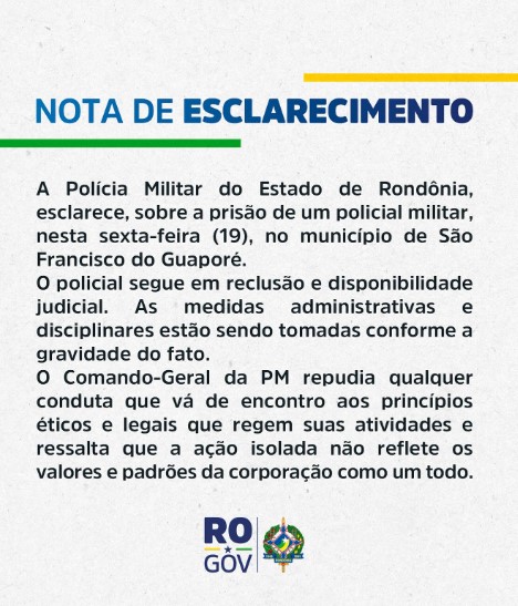 Corporação diz que ele segue em reclusão e à disposição da justiça