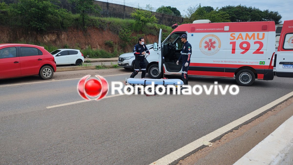Um ciclista de aproximadamente 40 anos foi socorrido em estado gravíssimo após ser atropelado por um carro modelo Spin na BR-364, próximo ao viaduto da Avenida Campos Sales, bairro São João Batista, em Porto Velho (RO) nesta manhã de terça-feira (23).