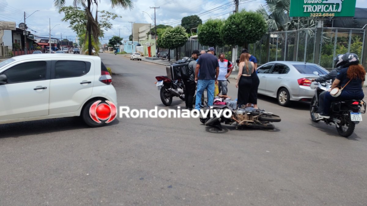 Motociclista acabou se chocando na lateral traseira do carro e caiu ao solo
