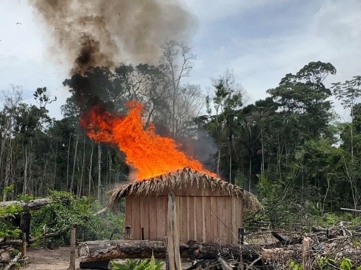 No local, foram encontrados e inutilizados veículos, motosserras, habitações e outras estruturas, bem como uma ponte com cerca de 100 metros de comprimento, utilizados para apoio às práticas ilícitas.