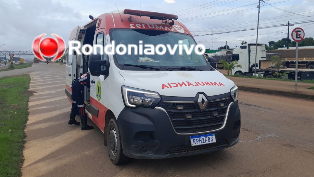 Um casal ficou com ferimentos após cair de moto nesta manhã de sexta-feira (29) na Rua da Beira, bairro Três Marias, em frente ao posto Carga Pesada, em Porto Velho (RO).