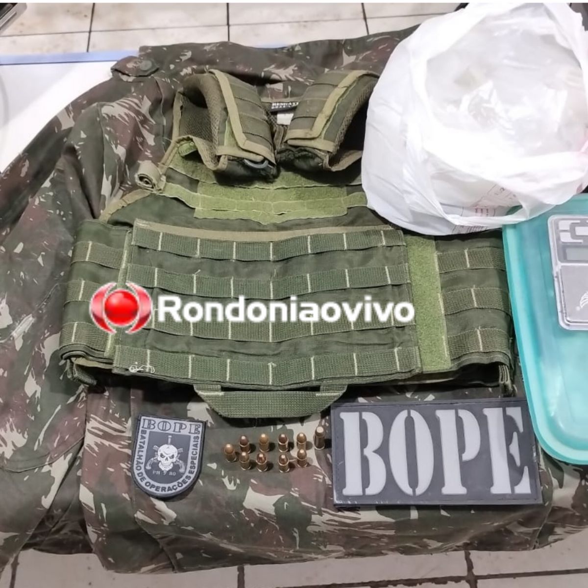 No imóvel a equipe da PM encontrou nove munições de calibre 9mm, uma de revólver e uma capa de colete balístico, além de balança de precisão e sacos usados para embalar droga.