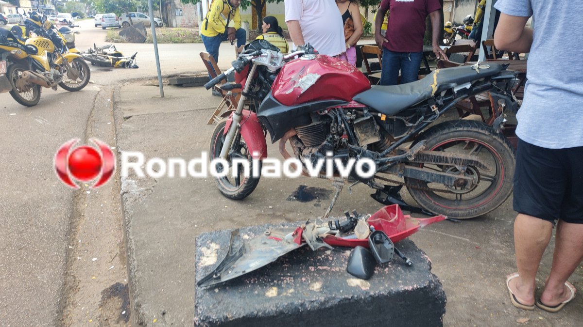 Um mototaxista e outro motociclista ficaram gravemente feridos na colisão. Testemunhas contaram que o moto-táxi transitava na Rua Buenos Aires e o acidente aconteceu no momento em que o condutor de uma motocicleta CB300 avançou a preferencial pela Alexandre Guimarães.