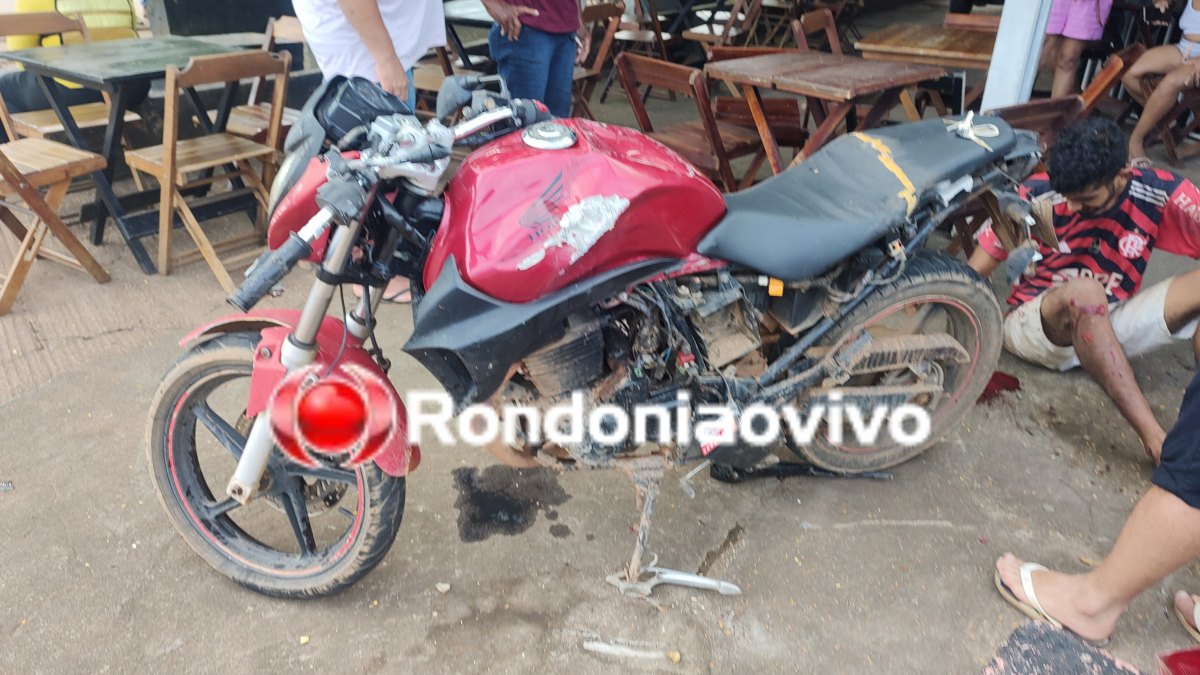 Em consequência do acidente violento, o condutor da CB300 foi parar na área de uma lanchonete. Ele teve vários ferimentos pelo corpo e sangrava bastante no braço esquerdo. O mototaxista sofreu grave fratura exposta na perna esquerda.