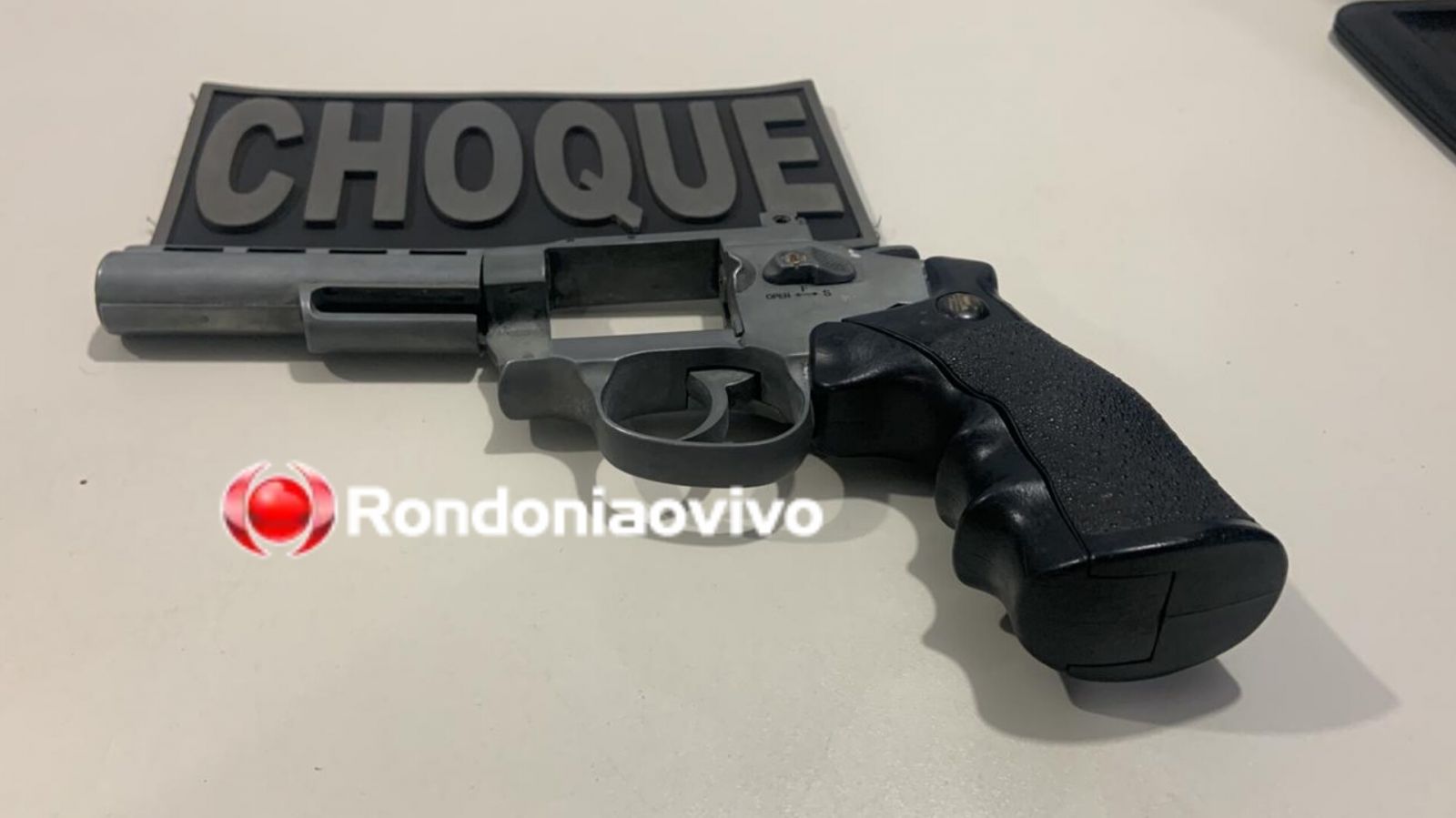 O acusado com uma arma falsa tentou roubar a motocicleta de um homem de 32 anos. A vítima conseguiu escapar do assalto e acionou uma equipe da PM que passava na região.