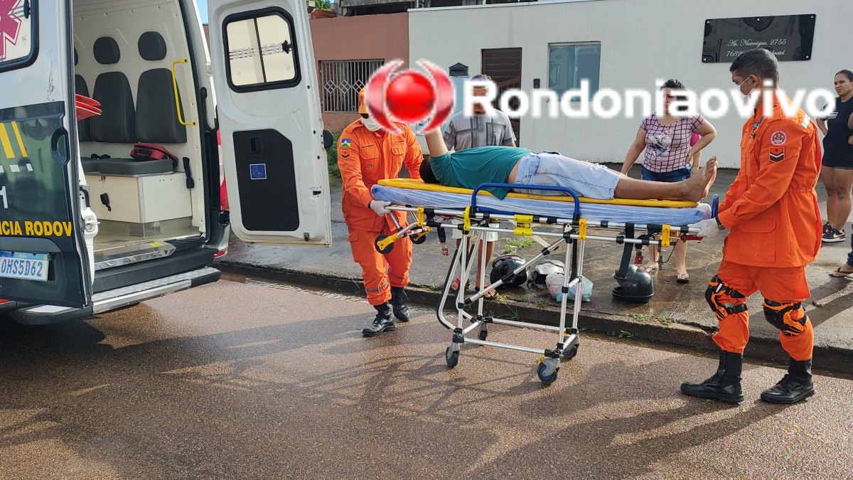 Com ferimentos nas pernas e braços, o motociclista foi socorrido por uma equipe do Samu. O rapaz foi levado para uma unidade médica.