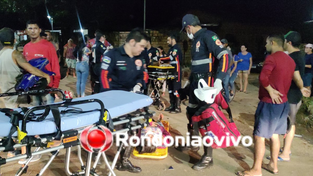 Com a batida lateral da motocicleta no carro, as mulheres tiveram várias lesões e foram socorridas por equipe do SAMU.