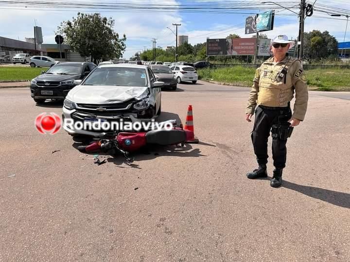 NA JORGE TEIXEIRA: Motorista de Onix avança preferencial e atropela motociclista