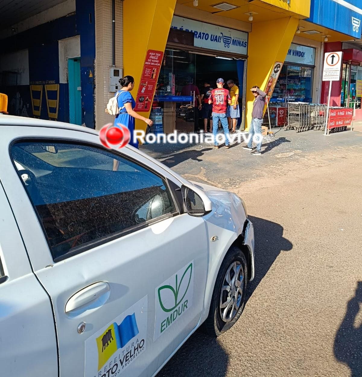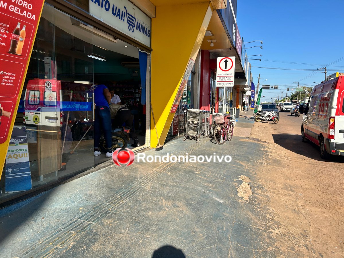 Segundo o Rondoniaovivo apurou, o motociclista seguia em direção bairro/centro quando ao mudar de faixa atingiu um carro da Emdur que ia ao lado. Com isso, o motociclista perdeu o controle da direção e invadiu um supermercado, quebrando a porta de blindex. A moto foi parar na região dos caixas do estabelecimento comercial.
