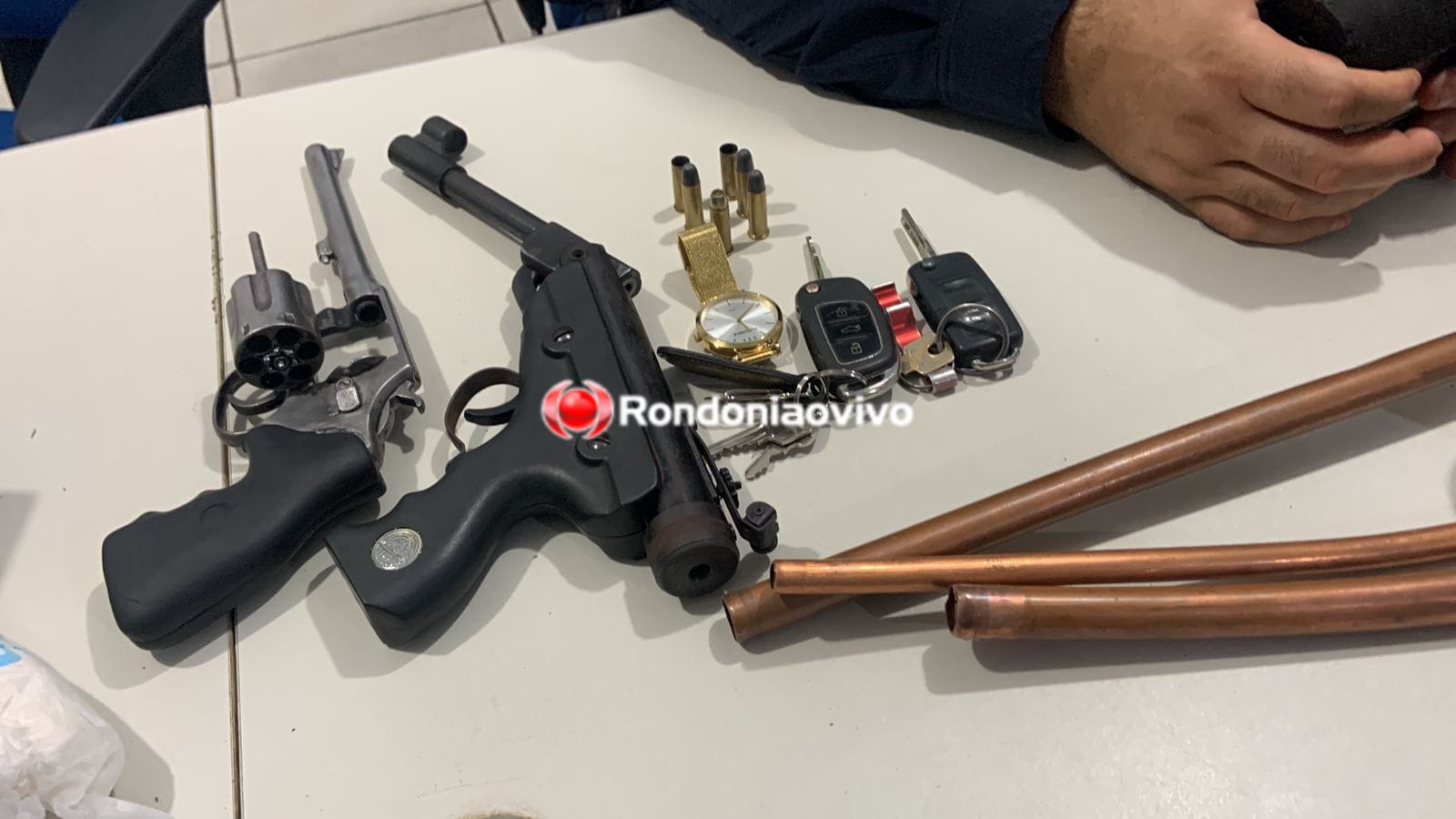 Os criminosos também foram flagrados com um revólver calibre 38 e uma arma de fogo de pressão adaptada para calibre 22.