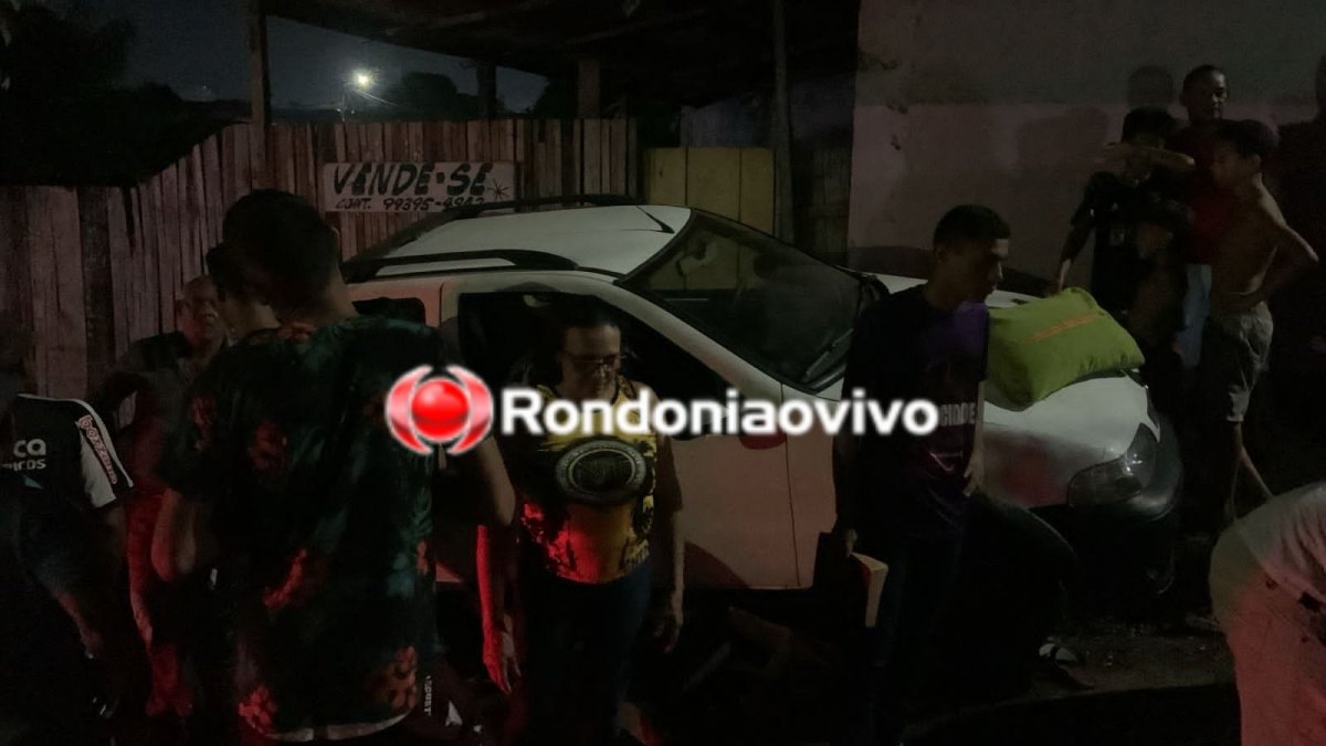 A Polícia Militar foi acionada para o local. O carro também atingiu e derrubou a cobertura da área de uma casa.