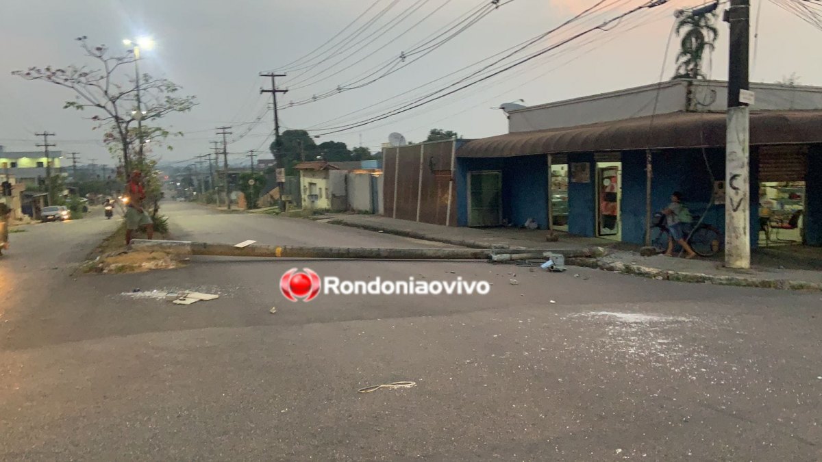 O motorista de um carro derrubou um poste no início da noite desta terça-feira (06) na Avenida Rio de Janeiro com Rua Getúlio Vargas, bairro Mato Grosso, região Central de Porto Velho (RO).