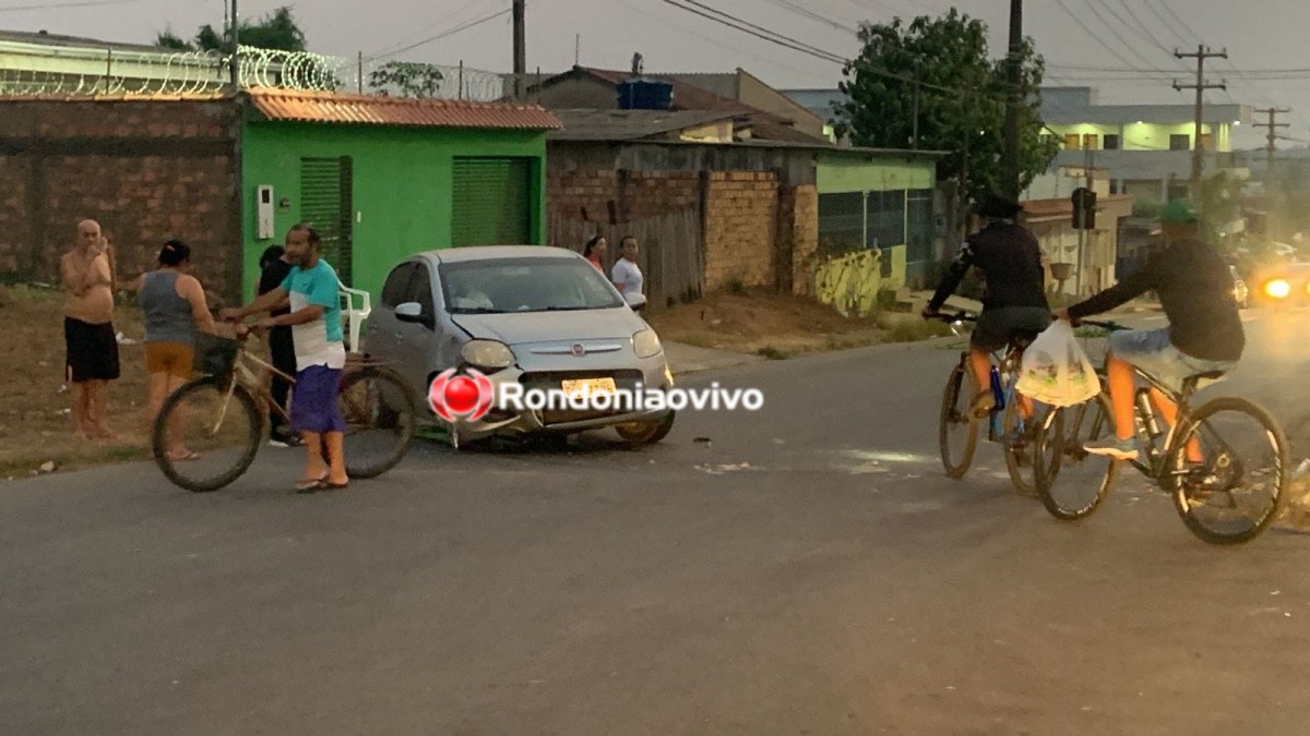 O condutor do veículo modelo Fiat Pálio sofreu lesão apenas na mão e contou que colidiu contra o poste após desviar para não se chocar contra um carro que teria cruzado a preferencial.