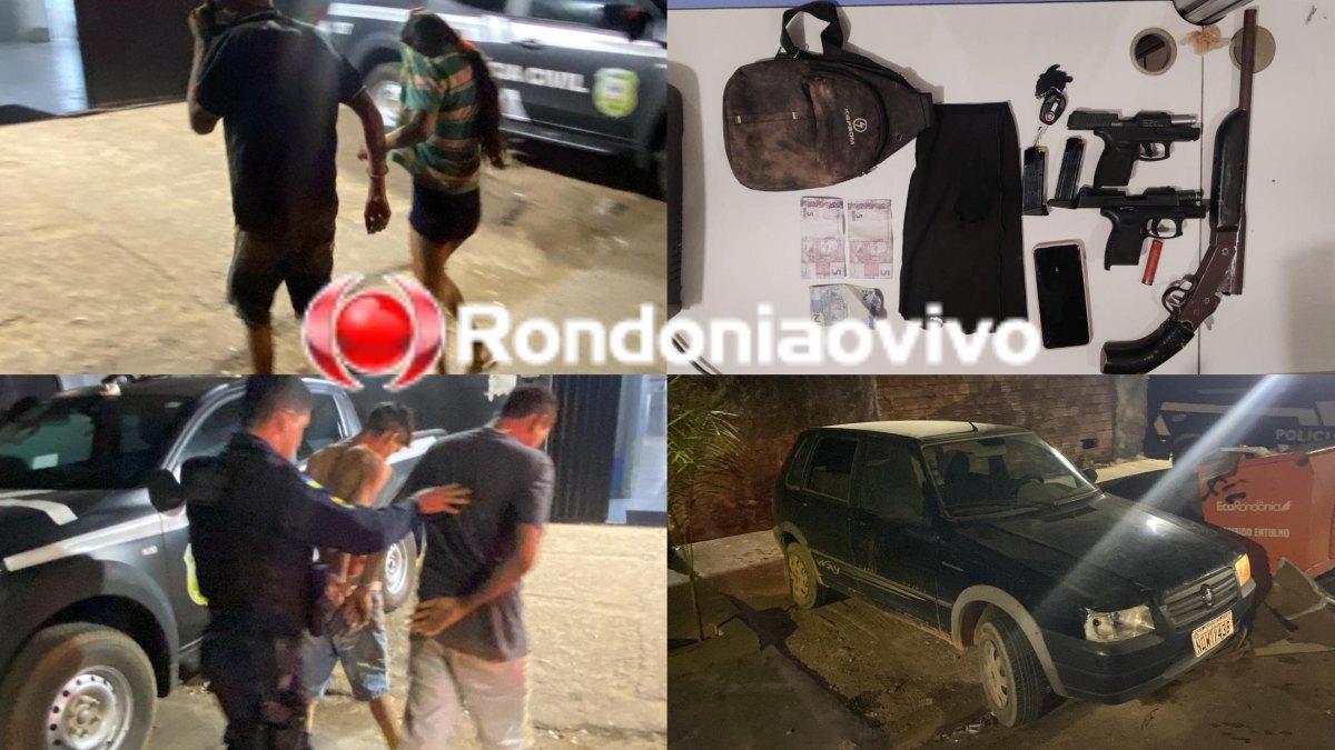 Quatro integrante do CV foram detidos com três armas de fogo na madrugada desta sexta-feira (13) na Rua Estrela com Prefeito Pereira de Assis, no bairro Planalto, zona Leste da capital de Rondônia.