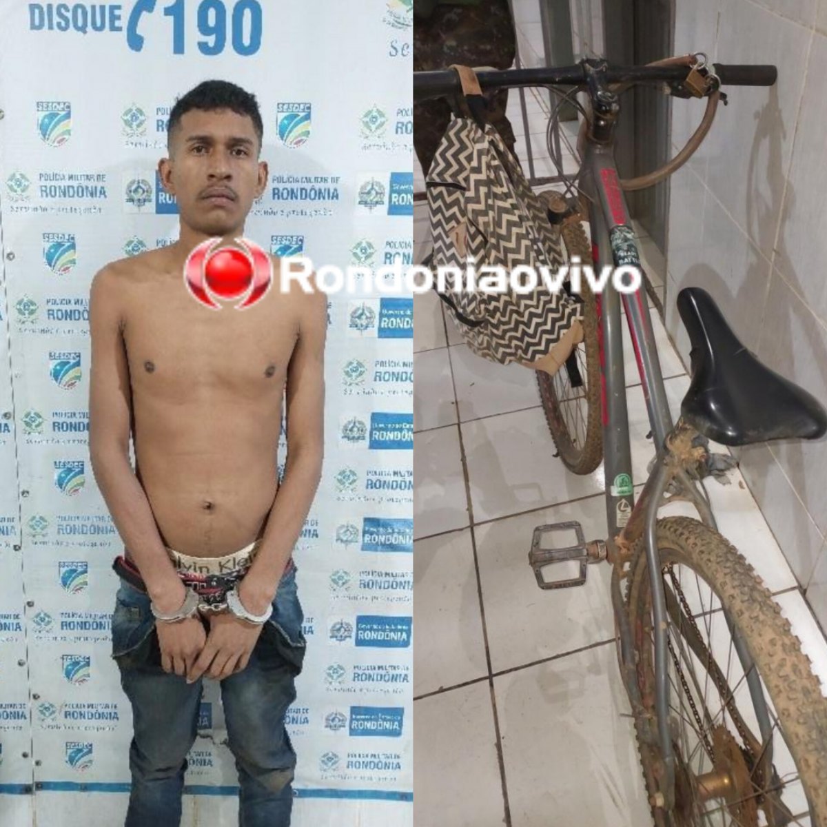 O apenado Daniel B. S., 21, foi preso por um policial militar à paisana após roubar um jovem de 23 anos na noite de ontem (01) na região da Estrada do Japonês com Rua da Beira, bairro Aeroclube, na zona Sul da capital de Rondônia.