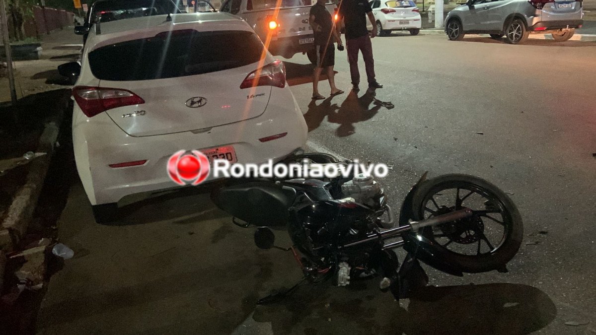 Após a colisão, a motocicleta ainda colidiu contra um carro modelo HB20 que estava estacionado.