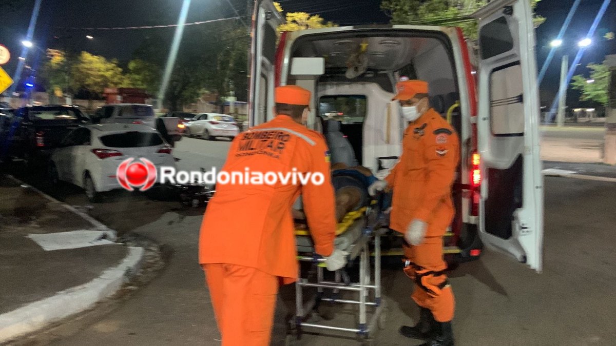 Vítima ima com suspeita de fratura na perna foi socorrida por uma equipe do Corpo de Bombeiros e levada ao hospital João Paulo II