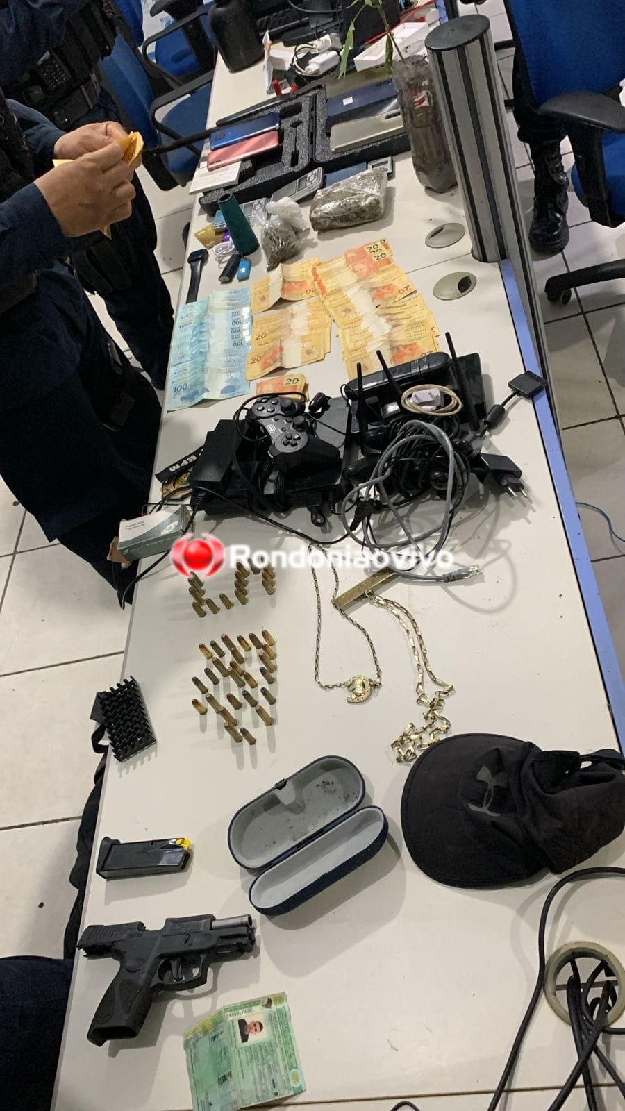 De acordo com informações colhidas pelo Rondoniaovivo, os policiais em uma ação rápida conseguiram abordar os dois acusados com um tablete de maconha, uma muda da mesma substância, uma pistola calibre 9mm com várias munições e numeração raspada, uma arma de fabricação caseira e muito dinheiro trocado, provavelmente oriundo do tráfico de drogas.