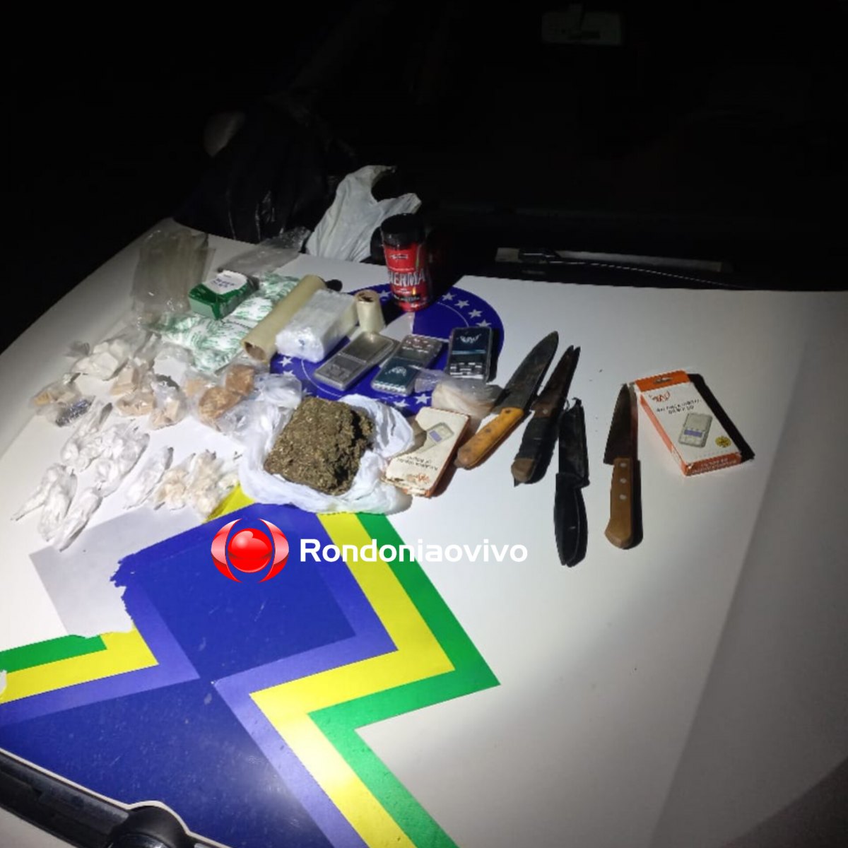 Policiais militares localizaram uma motocicleta furtada e também é apreenderam várias porções de drogas na Vila Princesa, em Porto Velho (RO) na noite deste sábado (23).