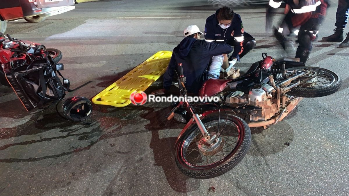 Uma colisão entre duas motos deixou um motoboy e uma mulher feridos na noite deste domingo (24) na Avenida 7 de Setembro com Rua Euclides da Cunha, na região Central de Porto Velho (RO).