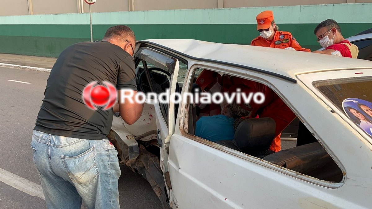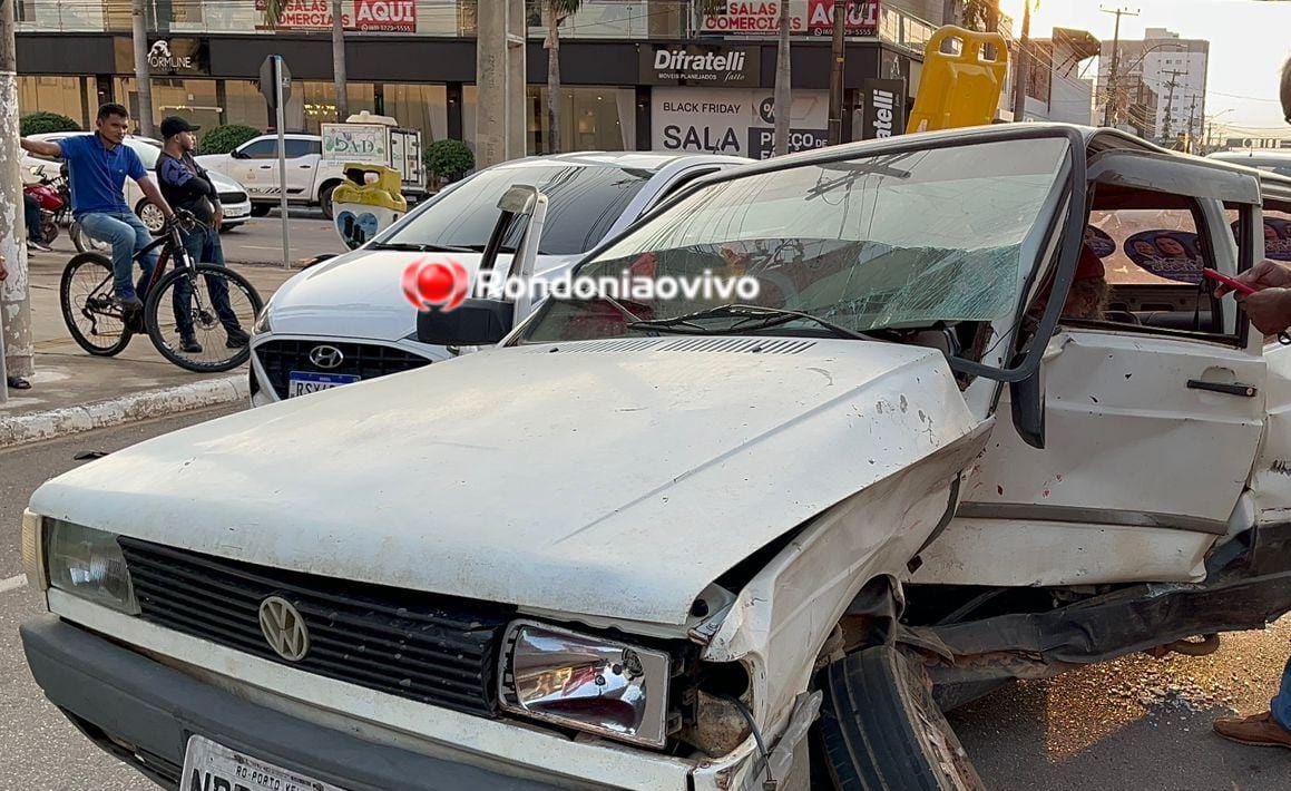 Uma violenta batida envolvendo três carros de passeio deixou um idoso preso nas ferragens e gravemente ferido no final da tarde desta segunda-feira (02) na Avenida 7 de Setembro com Rua Elias Gorayeb, bairro Nossa Senhora das Graças, na região Central de Porto Velho (RO).