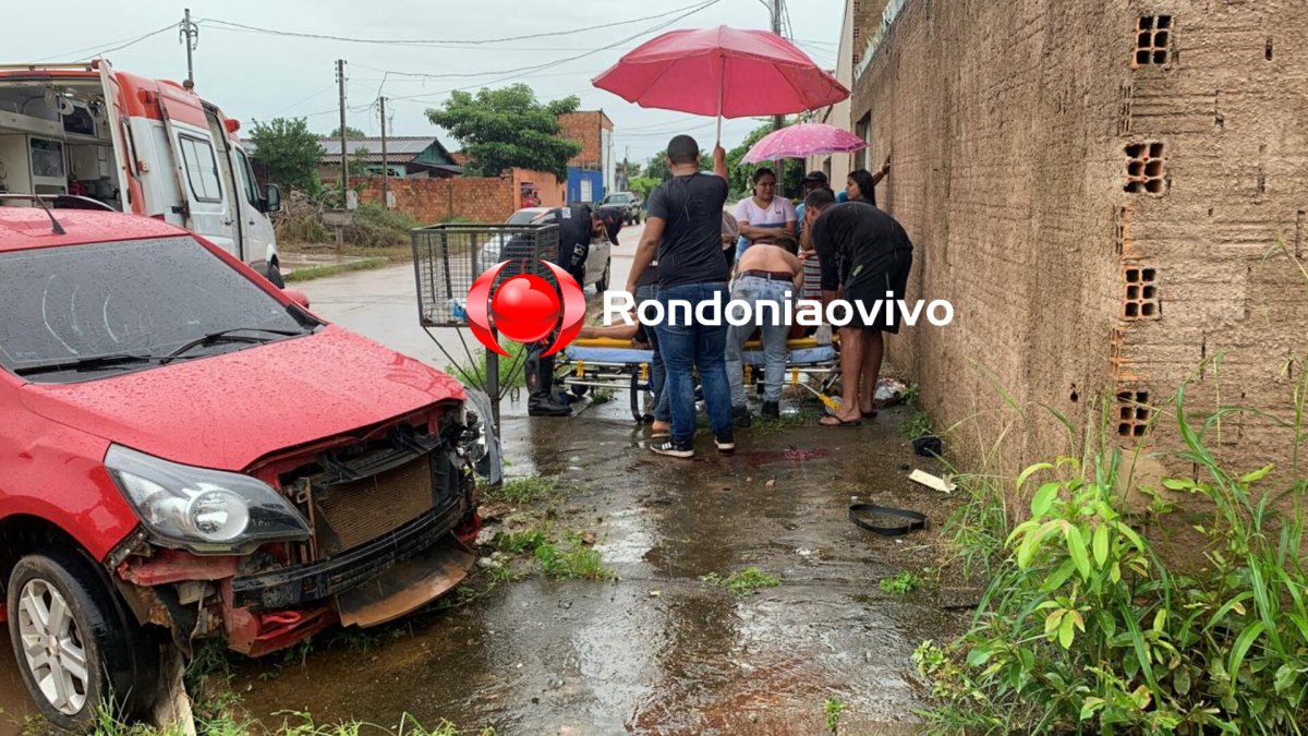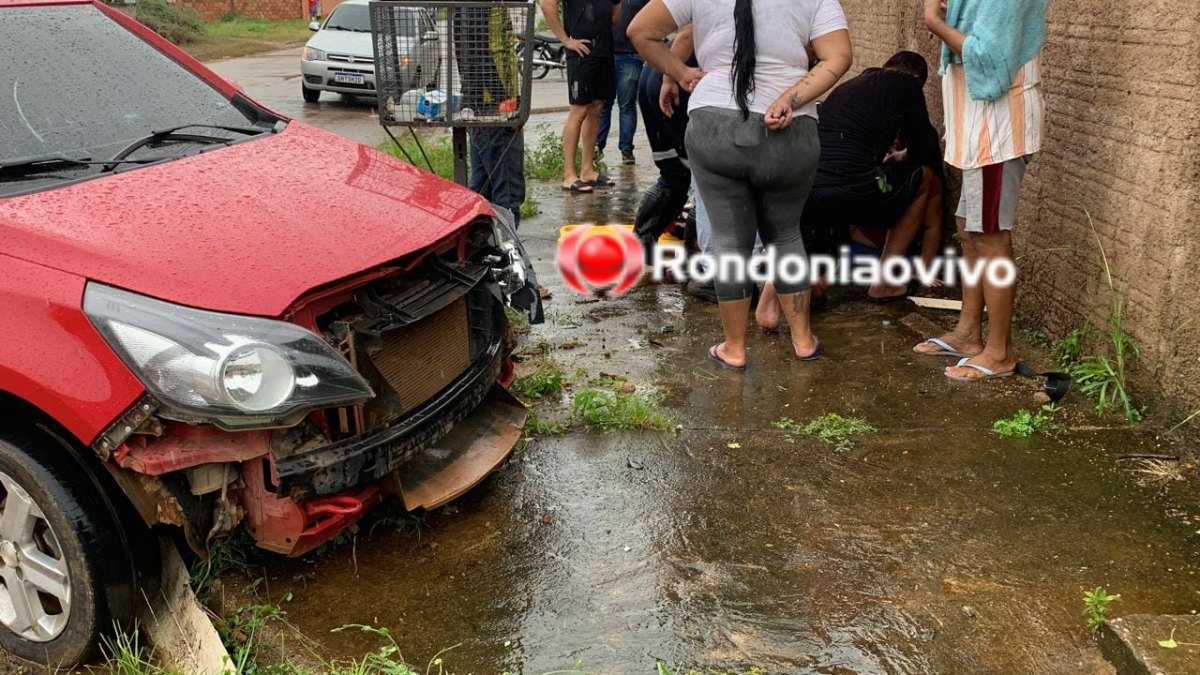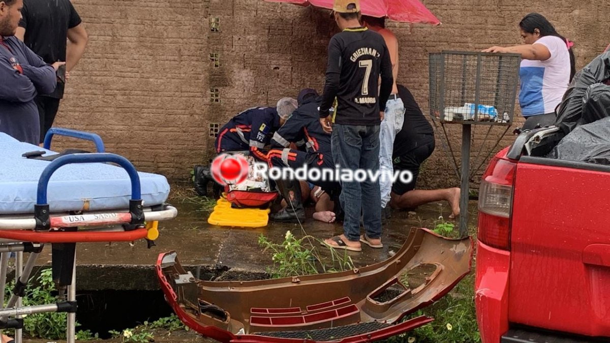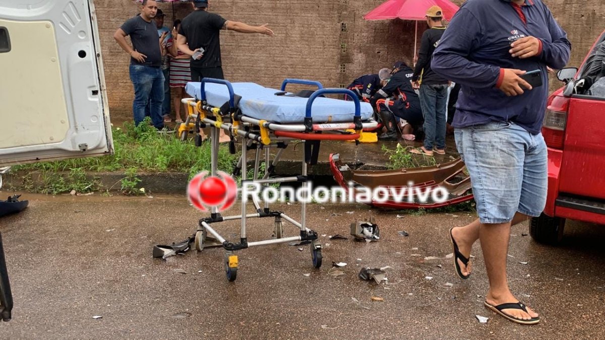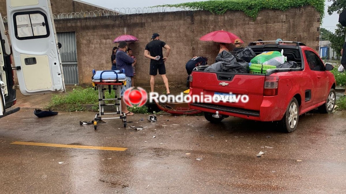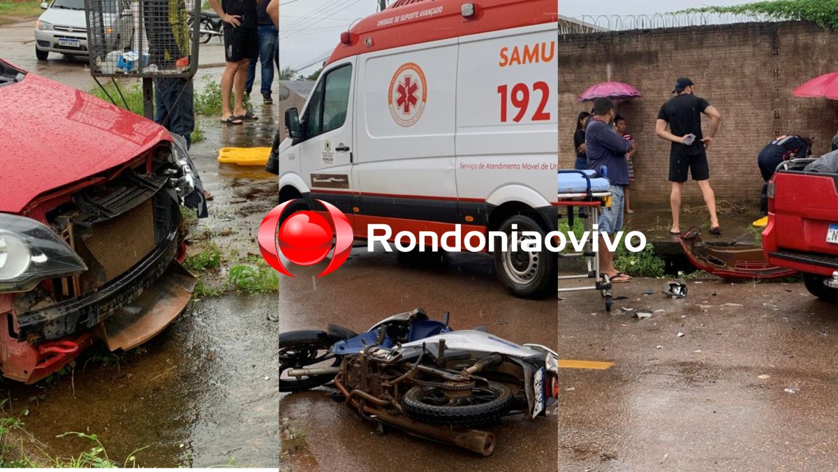 Uma mulher de 28 anos foi socorrida pelo SAMU ao sofrer grave fratura exposta após acidente entre carro e moto na manhã deste sábado (18) na Rua Chapada dos Parecis com Janaína, bairro Igarapé, em Porto Velho (RO).