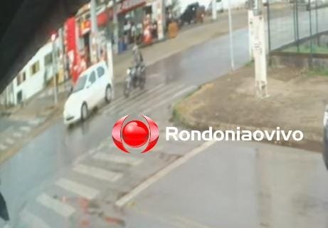 Imagens de câmeras de monitoramento registraram acidente que deixou um motociclista de 31 anos no final da tarde deste domingo (30) na Avenida Rogério Weber com Rua João Alfredo, bairro Cai N'água, na região Central de Porto Velho (RO).