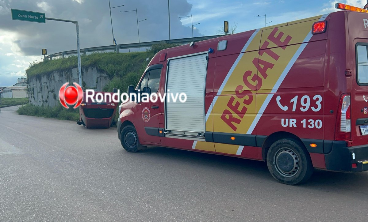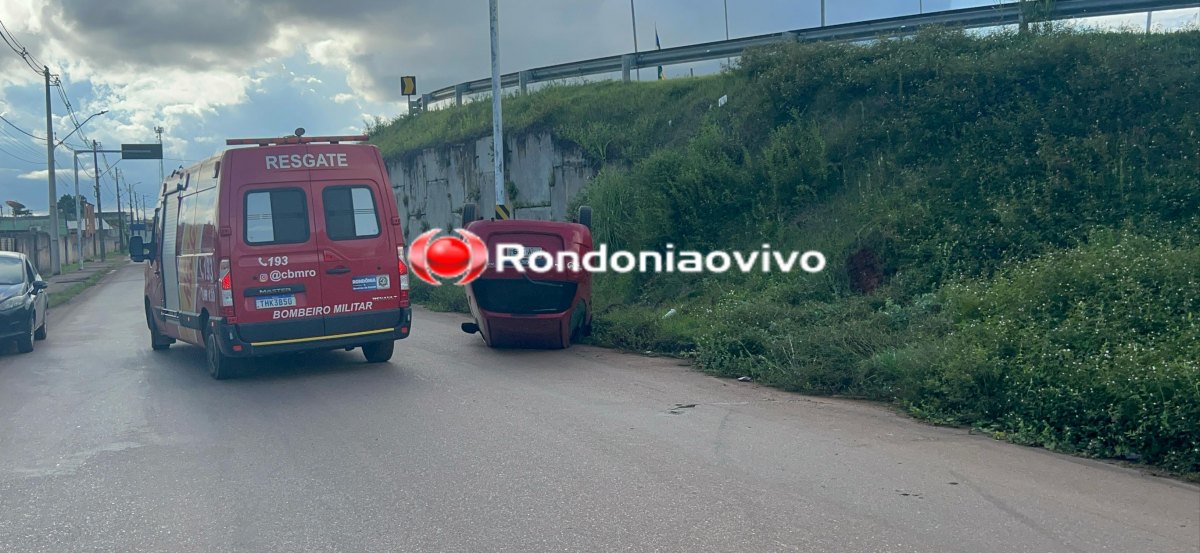 Uma mulher ficou ferida após capotamento de um carro modelo Ford Ka na tarde deste sábado (05) na Rua da Amizade com Três e Meio, em frente ao viaduto, bairro Areal da Floresta, na zona Sul da capital de Rondônia.