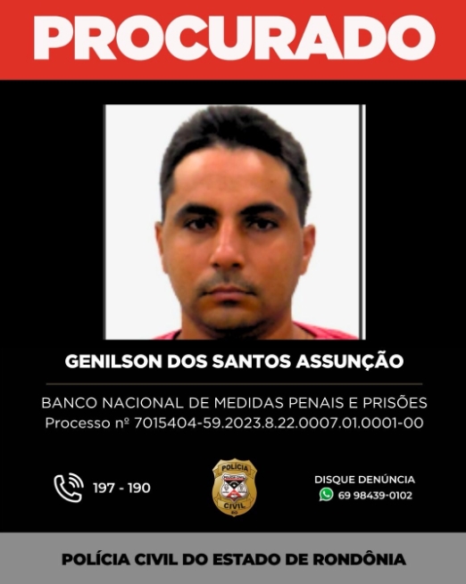 O foragido é investigado pela Delegacia da Mulher de Cacoal e está com mandado de prisão em aberto