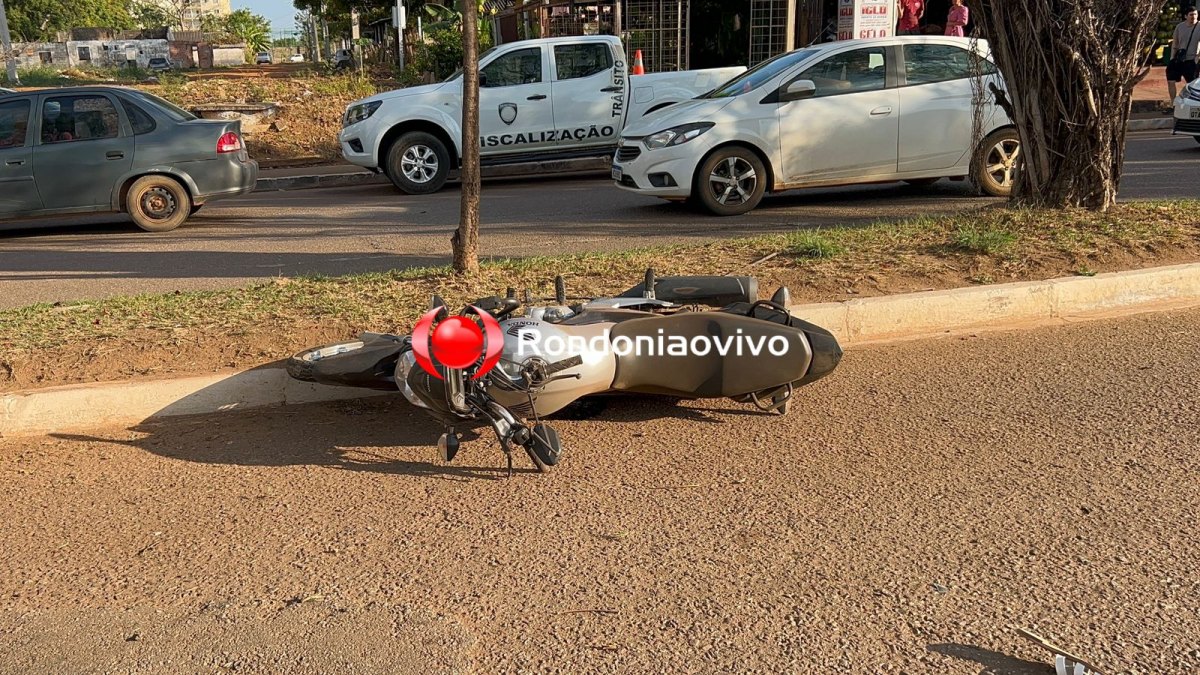 Com a violência do impacto, o casal foi parar a distância junto com a moto