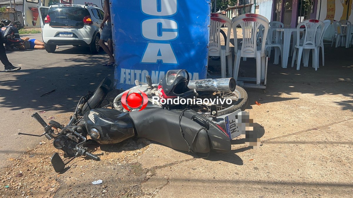 Um motociclista ficou gravemente lesionado após acidente de trânsito no final da manhã desta quinta-feira (14) na Rua Jaci-Paraná com Nicarágua, bairro Nova Porto Velho, na capital de Rondônia.