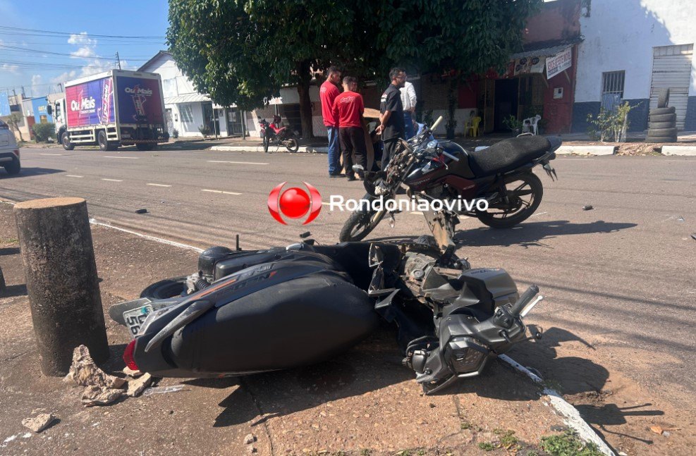 Dois motociclistas ficaram seriamente feridos após grave colisão ocorrida na tarde desta sexta-feira (22) no cruzamento da Rua Guanabara com Afonso Pena, bairro Nossa Senhora das Graças, região Central de Porto Velho (RO).