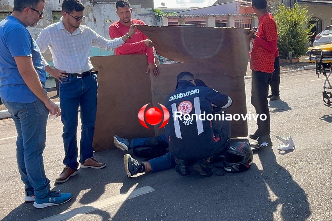 O condutor da moto que ia na preferencial teve fratura exposta na perna e outras lesões pelo corpo. O motoboy de delivery sofreu grave corte na cabeça com muito sangramento.