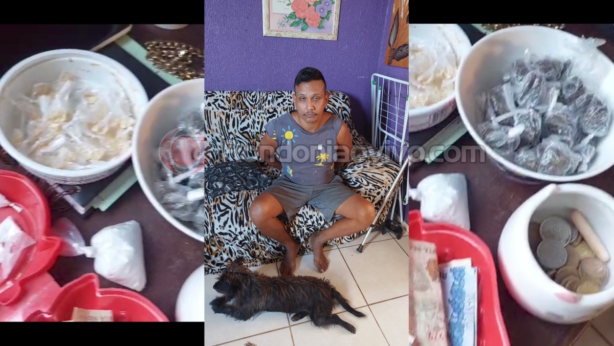 Em uma ação rápida, o acusado de chefiar a boca de fumo foi preso e várias porções de drogas apreendidas, além de materiais usados no tráfico.
