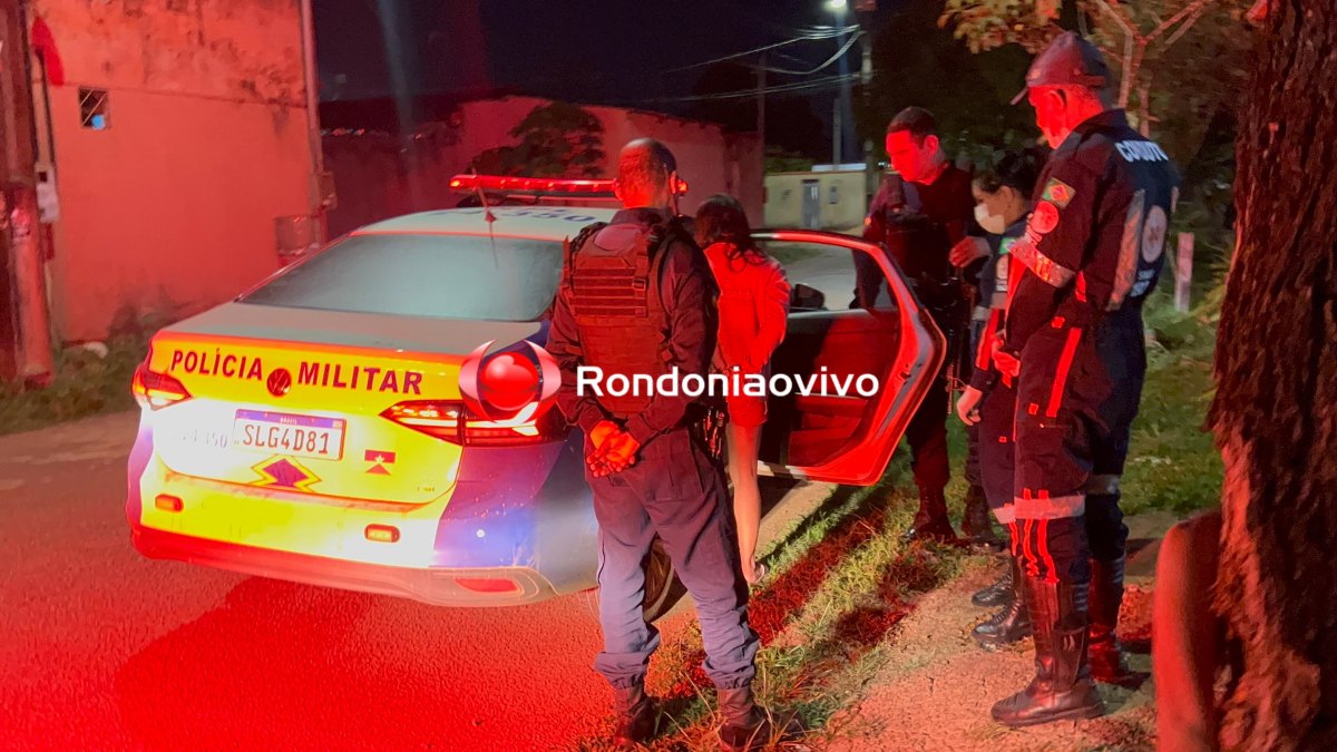 Com a chegada da PM, a mulher foi presa e algemada. Ela teve ferimentos leves e não quis atendimento médico do SAMU que foi ao local.