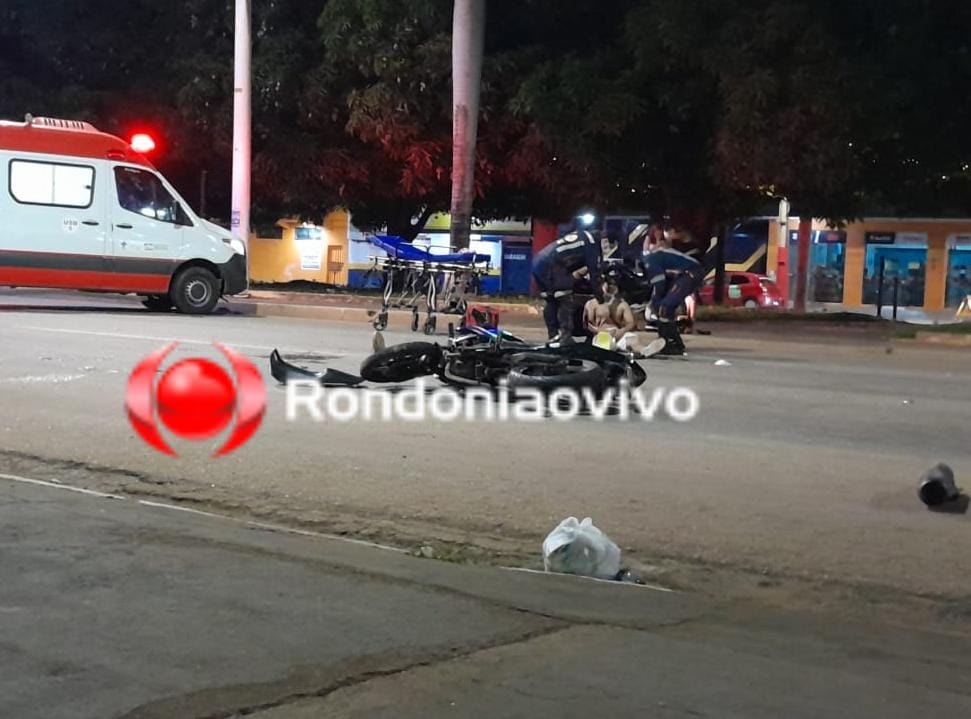 Dois motociclistas ficaram gravemente feridos após acidente ocorrido na madrugada deste domingo (19) na Avenida Jorge Teixeira com Raimundo Cantuária, em Porto Velho (RO).