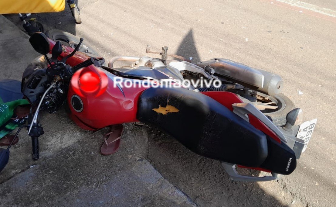 Um homem e uma mulher ficaram feridos após acidente  envolvendo três motos na manhã desta quinta-feira (06) na Avenida Raimundo Cantuária com Rua Abnatal Bentes de Lima, bairro Agenor de Carvalho, na capital de Rondônia.