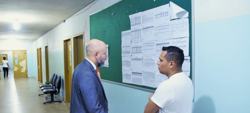 Uma das primeiras observações do Professor Aleks Palitot foi a ausência de quadro de profissionais e horários, que de acordo com recomendação do Ministério Público deveria ser fixado no hall de entrada da Unidade, mas que foi colocado no corredor principal.