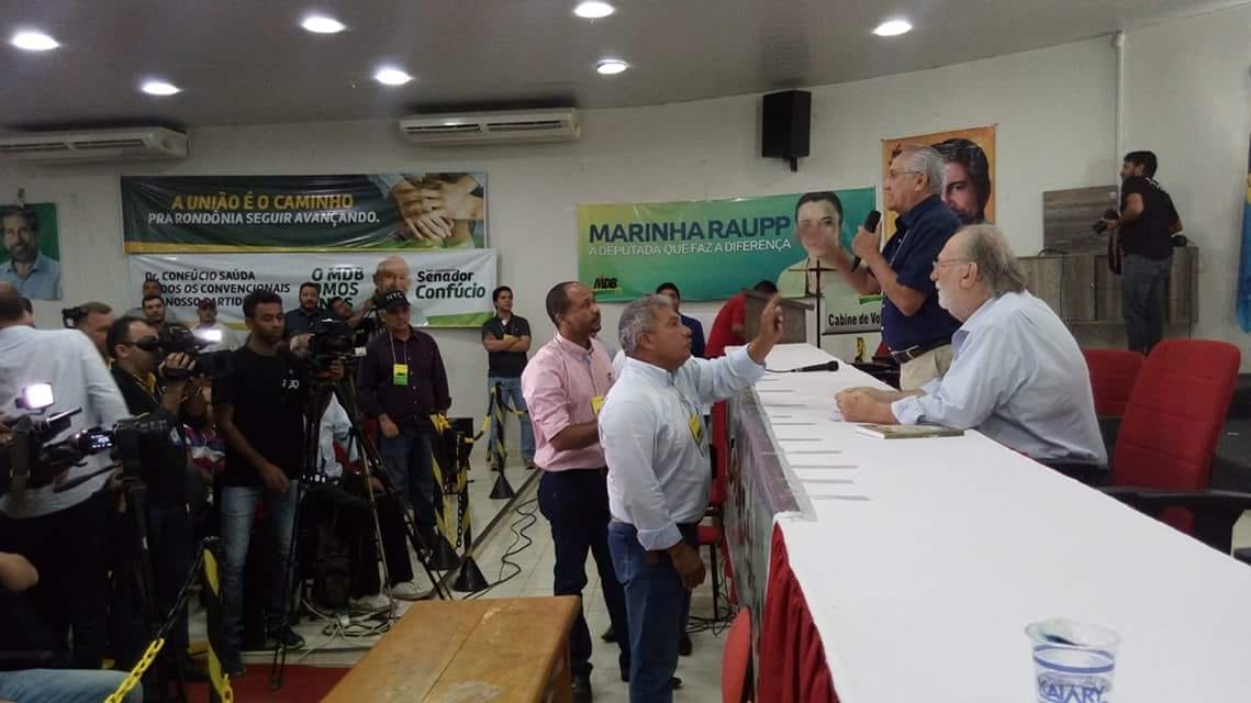 Discussão e indefinição para ver quem preside a convenção do MDB marcaram o encontro. Até então a reunião foi presidida pelo presidente do partido, Thomaz Correia, e os trabalhos seguiam com o secretário, Geral Luis Lenzi. O clima de incerteza pairava sobre quem iria para a disputa ao Senado Federal. A convenção estadual foi na sede do MDB de Rondônia e que também ia apresentar os nomes dos candidatos para a Câmara Federal e Assembleia Legislativa.