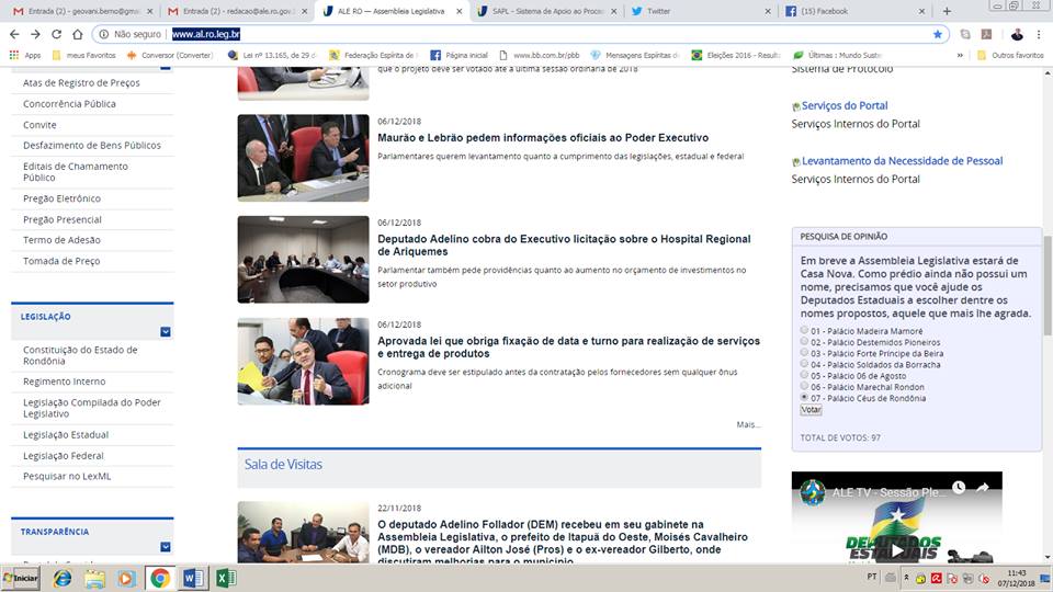 Acesse http://www.al.ro.leg.br/ e vote na enquete que vai escolher o nome do novo prédio da Assembleia Legislativa de Rondônia. A campanha foi lançada nesta semana e ao acessar a página principal do portal, já está a enquete postada.