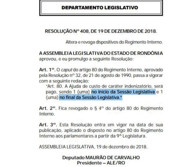 Os deputados estaduais rondonienses em uma manobra considerada suspeita acrescentaram aos próprios vencimentos, o que já está sendo visto como sendo o 14º e 15º salários de nossos parlamentares. Durante a votação que aprovou esses valores, o único parlamentar que votou contra foi Léo Moraes (Podemos), que, aliás, está se despedindo da Assembleia Legislativa para atuar no Congresso nacional como deputado federal.