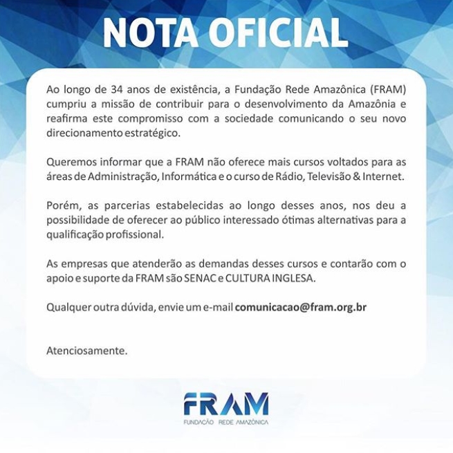 Em meio a crise que vive a Rede Amazonica, nesta sexta feira (08) a direçao do Grupo anunciou, em nota oficial, o fechamento da Fundaçao Rede Amazonica apos 34 anos de existencia. Ninguem se assuste se em breve outras operaçoes da Rede tambem forem fechadas.